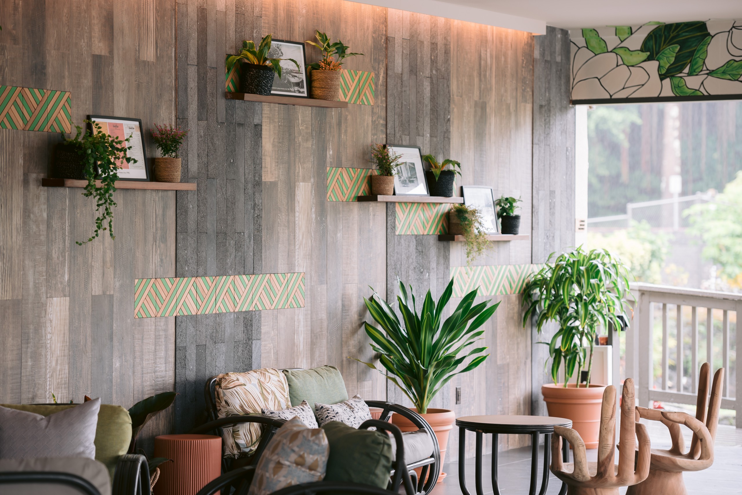 When you enter the open-air lobby at SCP Hilo Hotel, you can’t miss the major laid-back vibe. Hammock chairs overlook the koi pond, Instagram-worthy floral lei murals by a local artist adorn the walls, and locally made kombucha flows from the tap at the front desk, which is complimentary at check-in. You’ll notice other guests working on laptops, mingling on the sofa and grabbing local snacks from the all-vegetarian Provisions Market. On your way to your room, stop to browse the lending library where you can explore the hotel’s collection of thrifted and cultural books, available for guests to borrow and return for future travelers to enjoy.