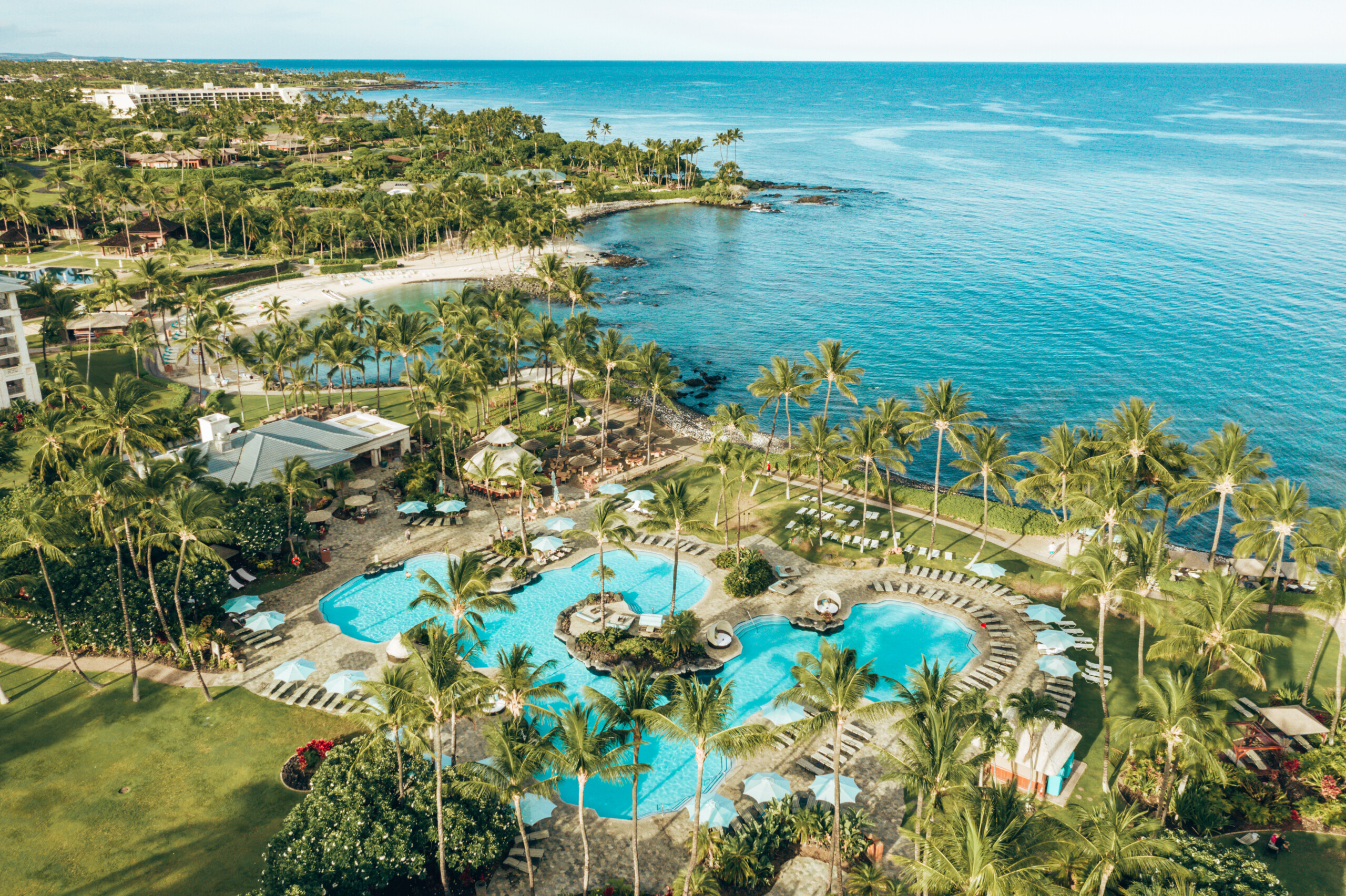 Surrounded by stunning beaches and a landscape shaped by lava, Four Seasons Hualālai is one of the best hotels in Hawaiʻi for those looking to unwind and embark on adventure. Located on Hawaiʻi Island’s western coast, the resort recently underwent extensive renovations. Four Seasons Hualālai boasts an elegant and sleek appearance but what sets this resort apart is the absence of any high-rise towers. Instead, you’ll see mostly two-story buildings that were designed to fit into the island’s natural setting and that accentuate indoor-outdoor living. Inside, the resort’s chic rooms feature neutral tones with tropical patterns and classic Hawaiian touches. But with access to the Hualālai Sports Club, guests won’t be spending a whole lot of time in them. The club is equipped with a yoga studio, tennis pavilion, four-lane fitness pool, rock-climbing wall, sand volleyball court and a 1,300-square-foot fitness center. After working up an appetite, guests can enjoy fresh seafood at ʻUlu Ocean Grill.