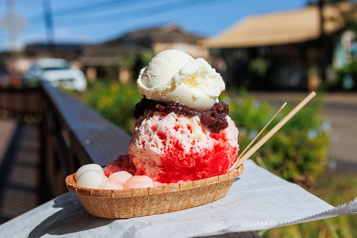 The edible bowl from Matsumoto Shave Ice in Hale‘iwa is definitely something we didn’t see coming. Several years ago the iconic shop started serving the Ichiban Special, a huge helping of shave ice topped with sweetened condensed milk, azuki beans (red beans cooked in sugar), balls of mochi (Japanese rice cakes) and a scoop of vanilla ice cream. And it’s all served in an edible waffle bowl made in Japan, originally to hold soba noodles. matsumotoshaveice.com