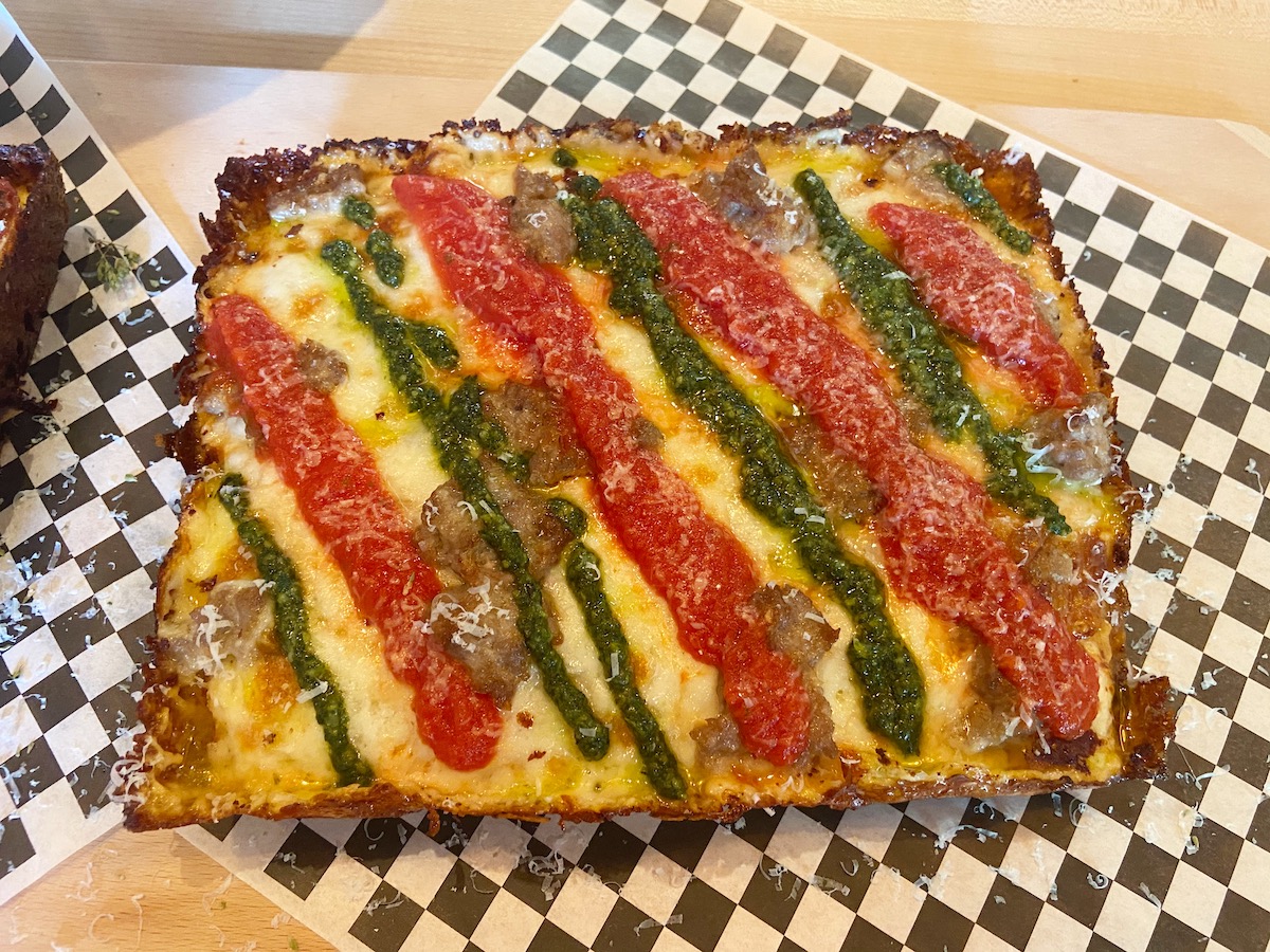 The shop, which will start neighborhood deliveries soon, offers eight different Brooklyn pizzas and three kinds of Detroits. Pies range from $21 to $28. Brooklyn style individual slices are available from $5.50 per slice.