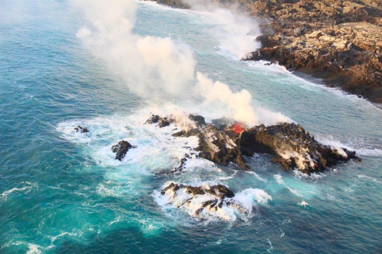 The new, tiny island created by lava from Kilauea volcano is now a peninsula