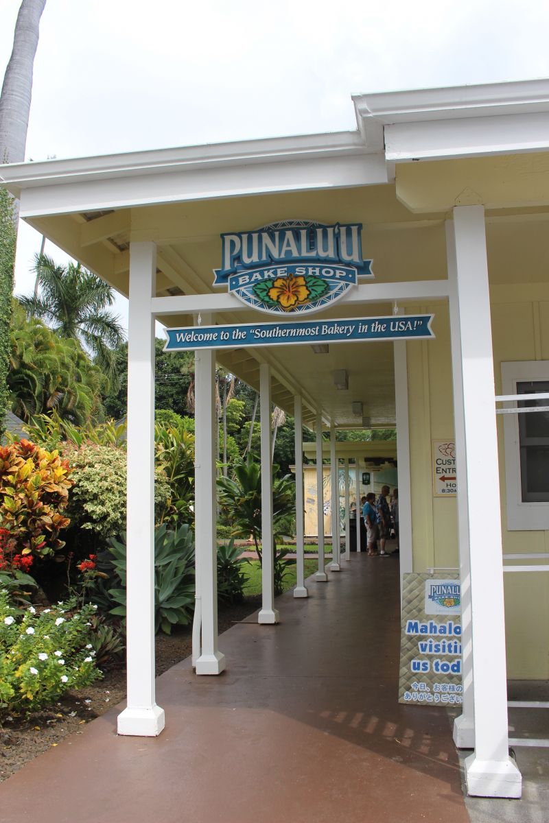 It’s time to get that famous Punaluʻu sweet bread, specifically at Punaluʻu Bake Shop, which is known for its Hawaiian-style sweet bread and malasadas. If you’re feeling famished, the bakery doubles as a lunch spot, where you can get anything from a bowl of chili to a traditional plate lunch. While you’re in Punaluʻu, stop at Punaluʻu Black Sand Beach—located off Nīnole Loop Road, just past Hokuloa Church—where you may also come across resting honu (Hawaiian green sea turtles). If you do see one, remember that it is against the law to touch a sea turtle and violations can result in hefty fines.