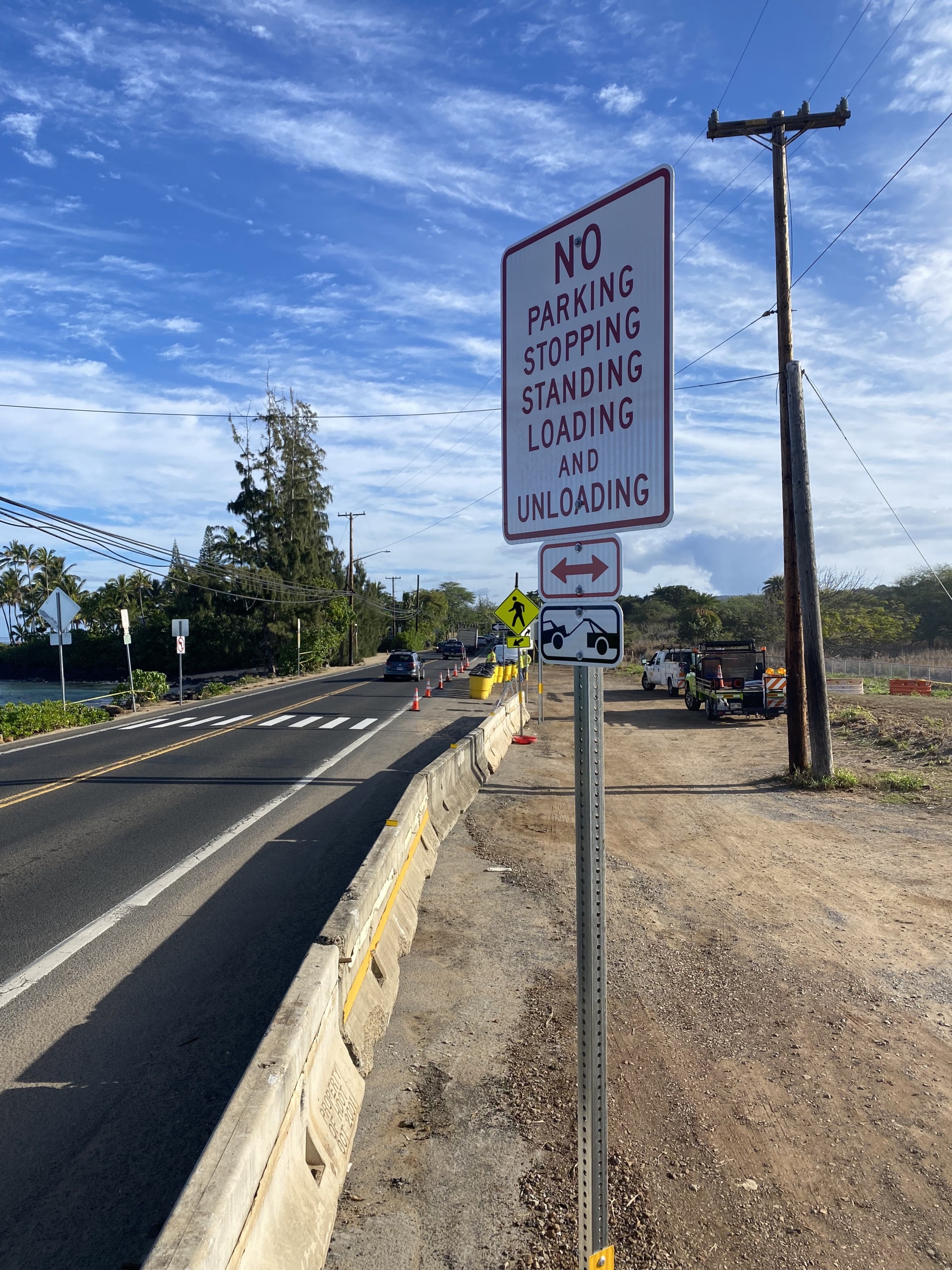 One of the most significant changes is that tour busses will be prohibited from parking in this new lot and that there will be “no parking, stopping, standing, loading and unloading” signs in front of barriers. This will hopefully ease the amount of foot traffic attempting to cross over to Laniākea Beach, which creates a situation where—once again—traffic in both lanes must stop to allow pedestrians to cross.