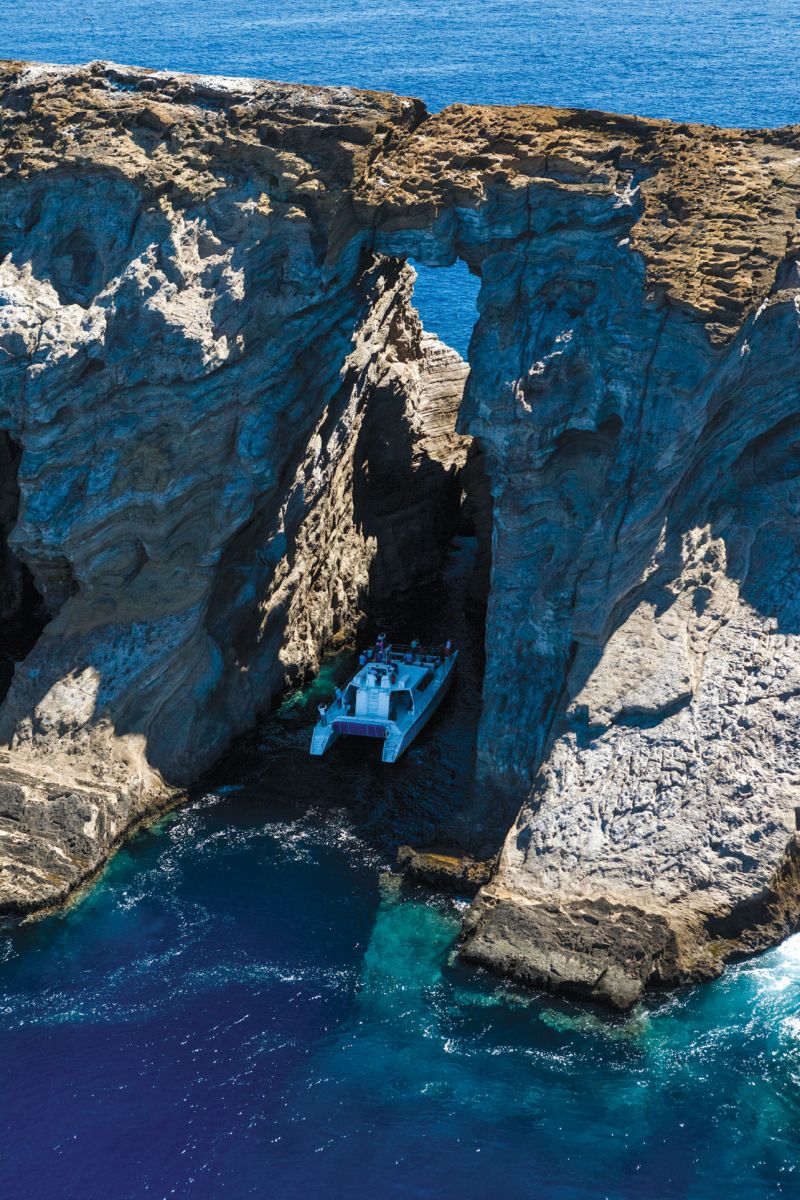 Seeing the spectacular cliffs and waterfalls of the Napali Coast by boat is already an incredible and unforgettable experience that everyone must do, but Holo Holo Charters takes it a big step further with its Niihau and Napali Super Tour. Not only do you get to see the Napali Coastline up close, from Port Allen all the way to Kalalau Valley, with a visit inside the Open Ceiling Sea Cave (weather-permitting), but the tour also takes you 17 miles across the Kaulakahi Channel to the waters off the “Forbidden Island” of Niihau for scenic coastal views and snorkeling on the outskirts of the small, uninhabited island of Lehua.