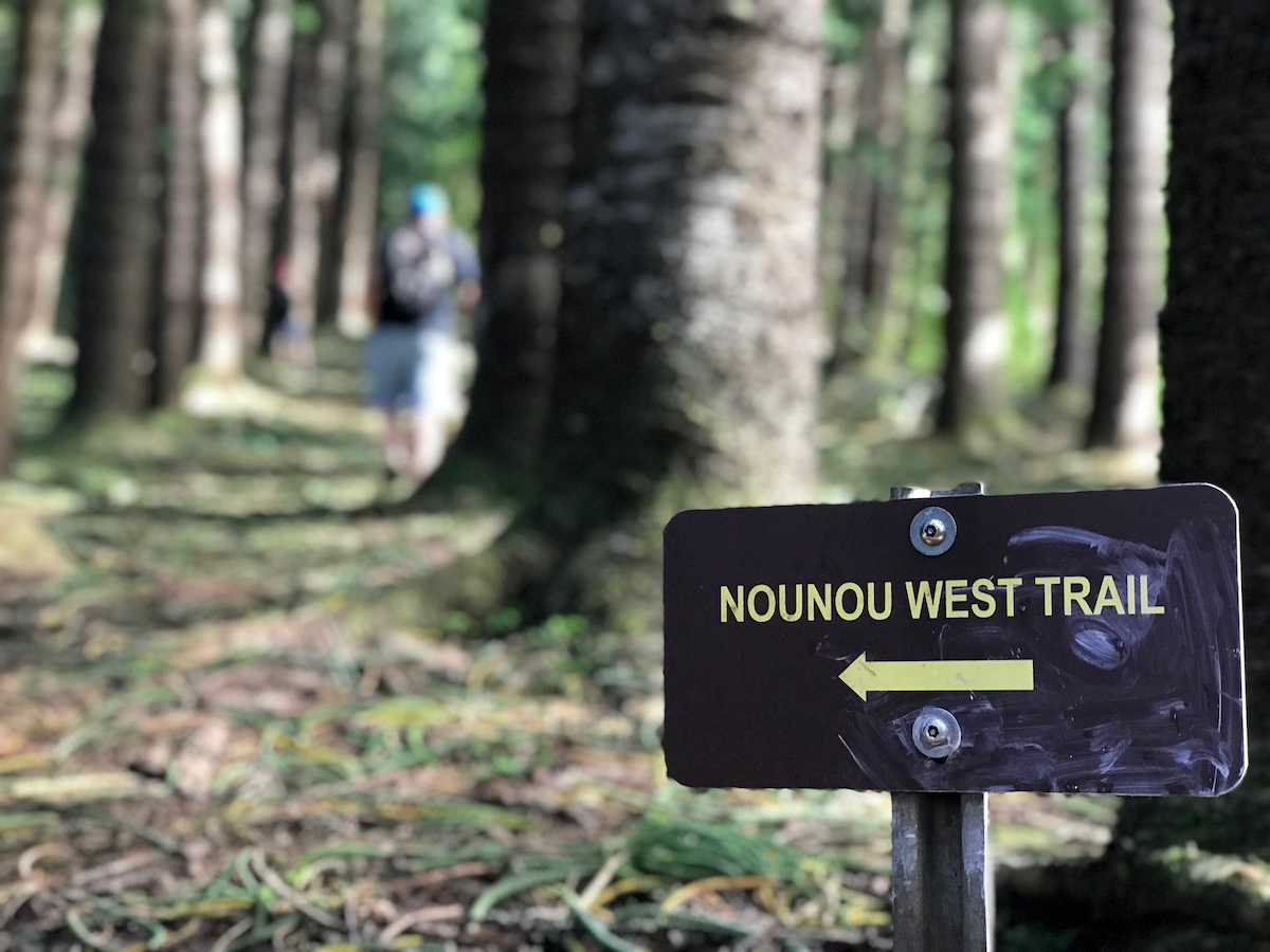 This easy, 4.3-mile roundtrip hike is great for all skill levels. It follows an old road that’s wide and well graded. The climb along the ridge in the foothills of the Makaleha Mountains is pretty gradual, with native ʻōhiʻa and ironwood trees. There’s a nice grassy field with picnic tables early in the hike; we suggest continuing on, though, as the views of Nounou and Waiʻaleʻale are breathtaking.