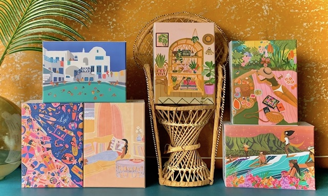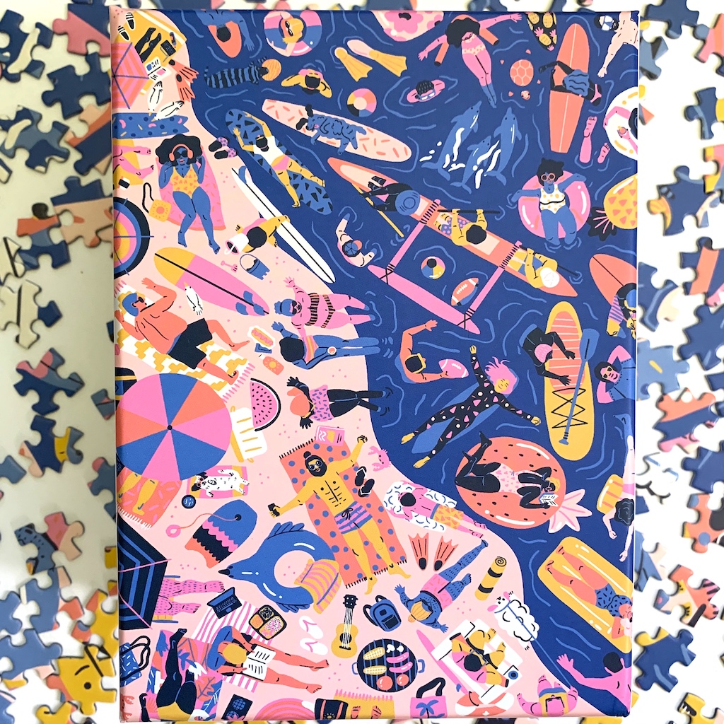 All of Surf Shack’s puzzles feature charming and cheery prints from artists all around the world, including Kim Sielbeck’s Beachin’ print, reworked to fit on the 19-by-28-inch space. Suh-weet! However, Tuteur most enjoys discovering and collaborating with artists for exclusive prints. “I find artists that I love! Instagram has been a great way. Sometimes, our values just align. They may be fellow ocean lovers, and we come up with a concept that they’ll execute.”