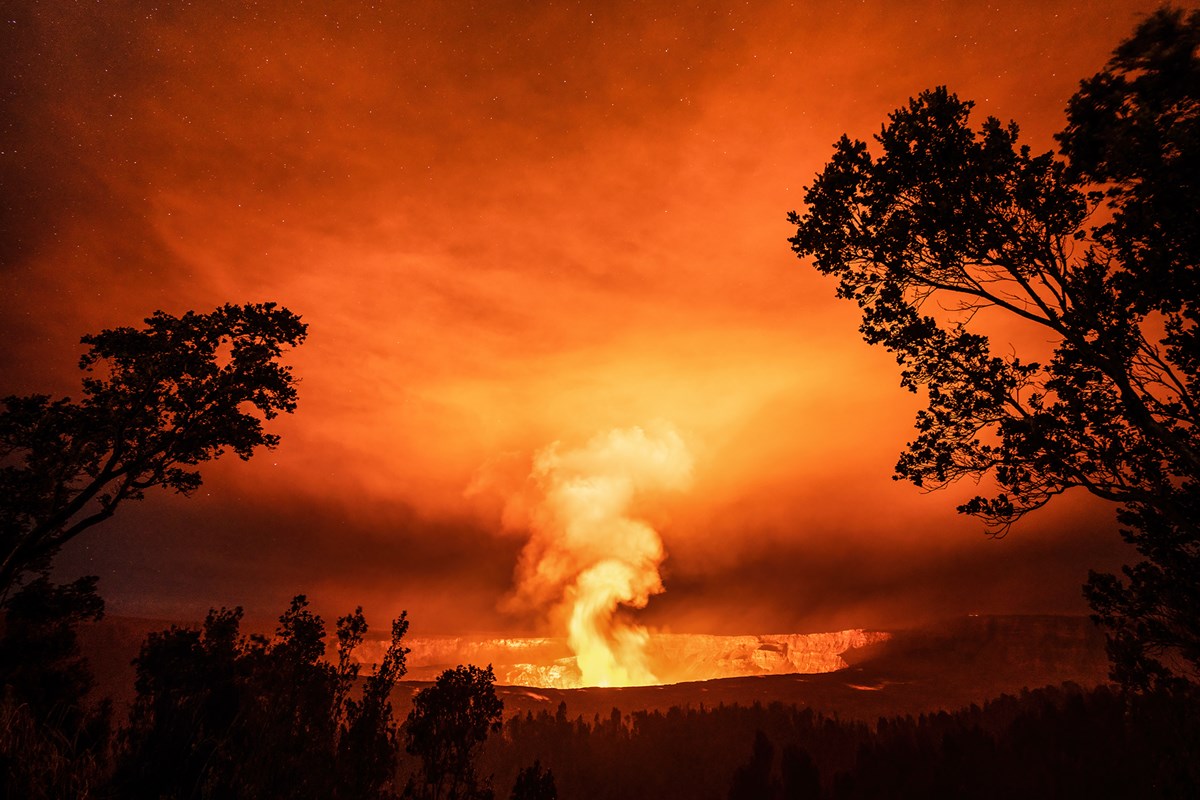 According to the park, the best eruption viewpoints day or night are along Crater Rim Trail, and include Uēkahuna, Kīlauea Overlook, Wahinekapu (Steaming Bluff), Kupinaʻi Pali (Waldron Ledge), Keanakākoʻi and other overlooks. Note that there’s limited parking at the Devastation Trail parking lot, used to access Keanakākoʻi, and expect long waits at the more popular overlooks. Volcanic eruptions can be hazardous and change at any time. Stay on marked trails and overlooks, and avoid earth cracks and cliff edges. Do not enter closed areas.